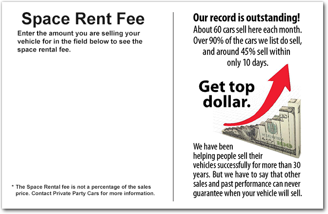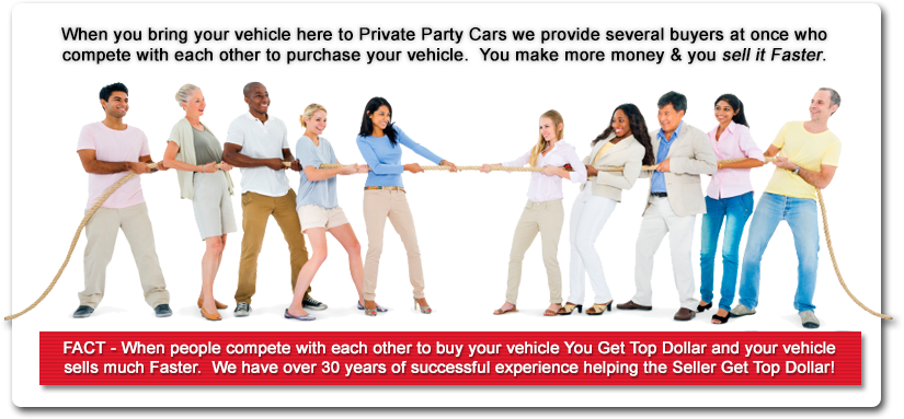 Private Party Cars offers a better alternative: a professional, safe, and highly visible location to Showcase Your Vehicle. Our process is simple: We Rent You a Space on our lot to Showcase Your Vehicle. Our lot is located at the intersection of Mill St. & Interstate 395 (580), the 2nd busiest intersection in Reno, (Kitty Corner from the Grand Sierra Resort Casino). We appraise your vehicle to help you determine the marketplace value of your vehicle. Remember - when people compete with each other to buy your vehicle You Get Top Dollar and you will sell it Faster. Then sit back and the buyers will contact you directly when they are ready to purchase your vehicle.